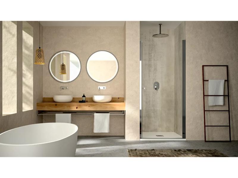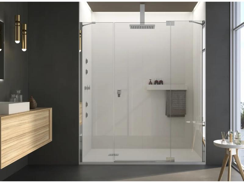 As nossas divisórias de duche abatíveis e dobráveis destacam-se pelo cuidadoso fabrico das suas dobradiças, criadas pelo nosso departamento de inovação e design para que possa desfrutar do máximo conforto e de um sistema impecável de abertura das folhas.
