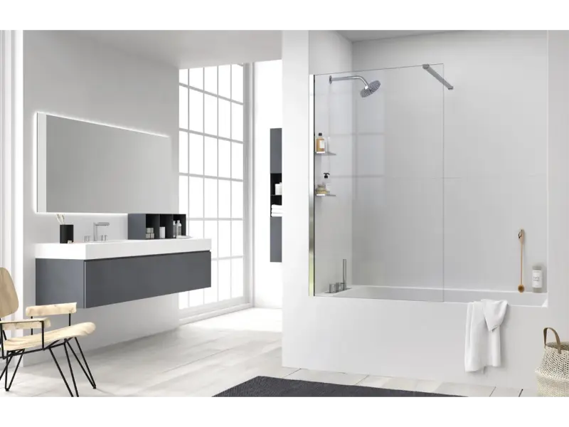 As resguardo de duche de painel fixo são uma opção simples e esteticamente agradável. São constituídos por um único painel de vidro sem moldura ou emoldurado e têm um aspecto minimalista. Contudo, são adequados para utilização em casas de banho grandes, uma vez que requerem uma grande área de acesso.