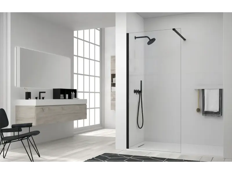 Também oferece muitas das vantagens de um recinto de duche de vidro, tais como um aspecto elegante, um toque aberto e facilidade de personalização, tudo isto com um perfil mais minimalista