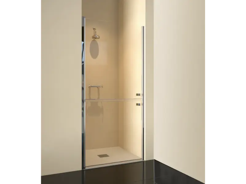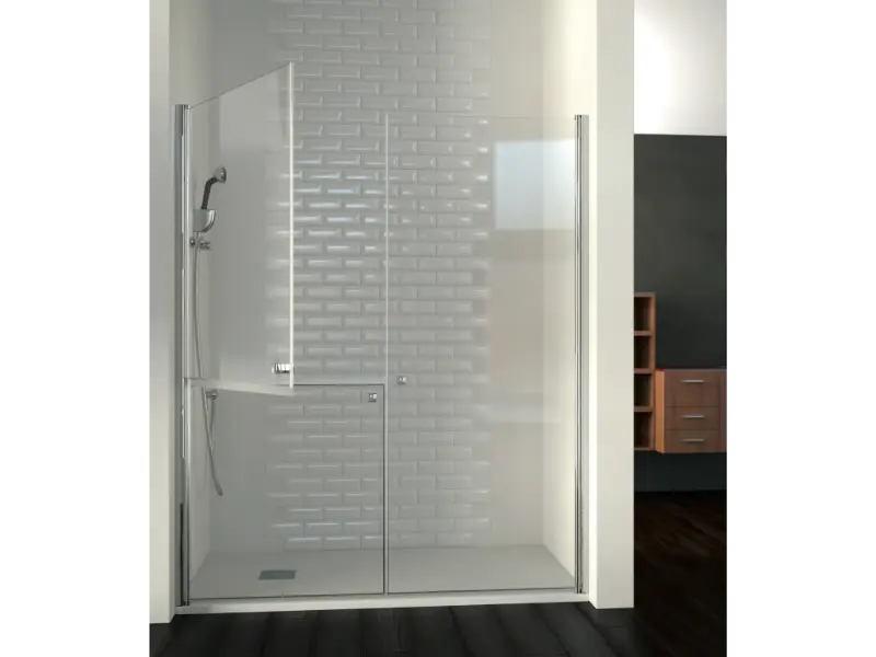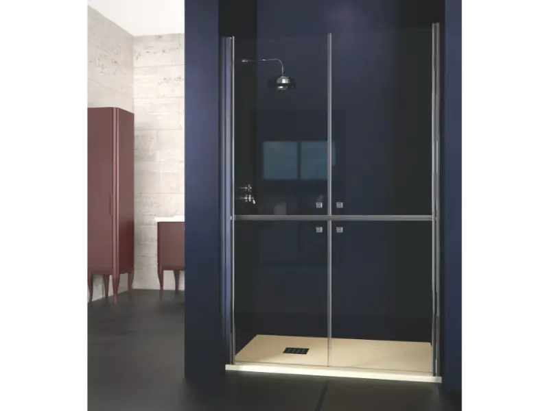 Doccia MALE resguardo para duche para mobilidade reduzida A divisória de duche para mobilidade reduzida Doccia MALE é uma divisória com duas folhas dobráveis, uma delas dividida em duas partes independentes, que se abrem para ambos os lados.
